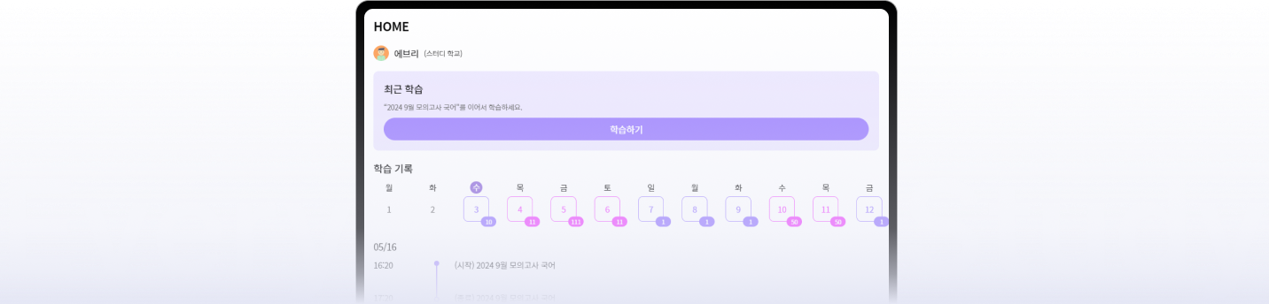 최근 학습 내역, 학습 기록, 그리고 틀린 문제까지!